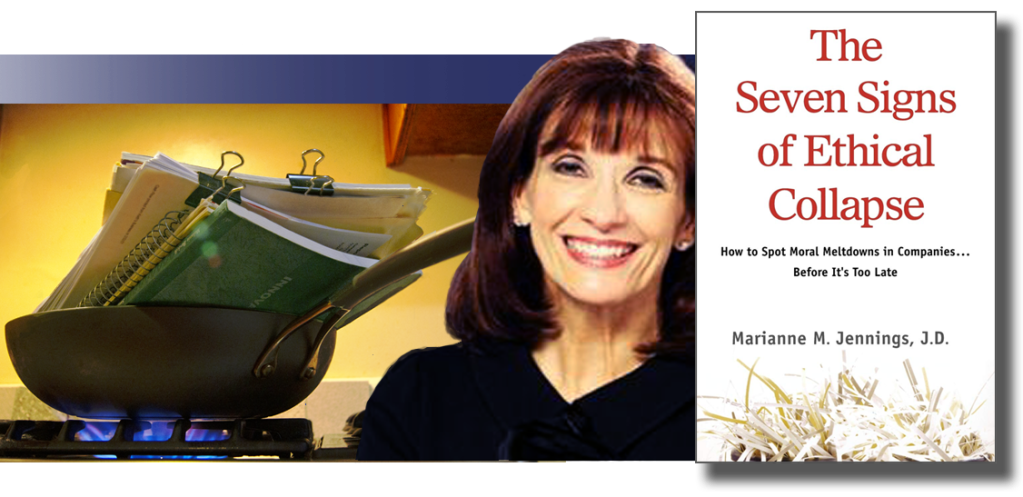 Marianne Jennings, educated as an attorney, is professor at Arizona State University. The Seven Signs of Ethical Collapse: How to Spot Moral Meltdowns in Companies Before It’s Too Late was her tenth book. She writes and speaks widely on business ethics and has lots of experience consulting with companies great and small. She is a wonderful writer and a feisty, unintimidated observer and analyst of the business world and its ups and downs. Few books provide as much new and helpful information per page as this volume.