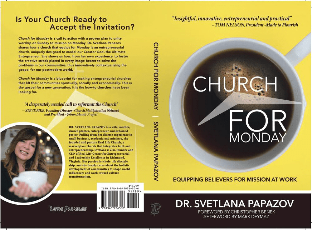 Then in Richmond, Virginia, Papazov planted Real Life Church – and partner organization Real Life Center for Entrepreneurial and Leadership Excellence. In Church for Monday Svetlana Papazov is not just sharing good ideas – she is sharing in-the-trenches experiences. Since the book came out in 2019, she has had to cope with the pandemic shut-down and distancing requirements just like the rest of us in our church, work, and social lives. How on earth do you move effectively and faithfully from “hands-on” and “face-to-face” mentoring and leadership to socially-distanced, virtual, on-line methods and means? (Attend our August 7, 2021 WP313 Forum to hear about this newest chapter!).