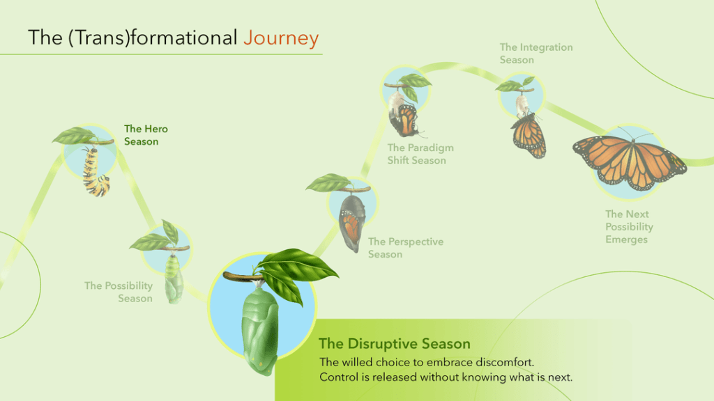 The trapeze moment is the willing choice to move towards  discomfort and suffering or the unknown. We’ve  stepped into the crisis and must move to a posture of both unlearning and curiosity even if it is really uncomfortable. This moment is part of understanding that if we take a risk here, and make ourselves vulnerable to a process, then we may truly realize something new.